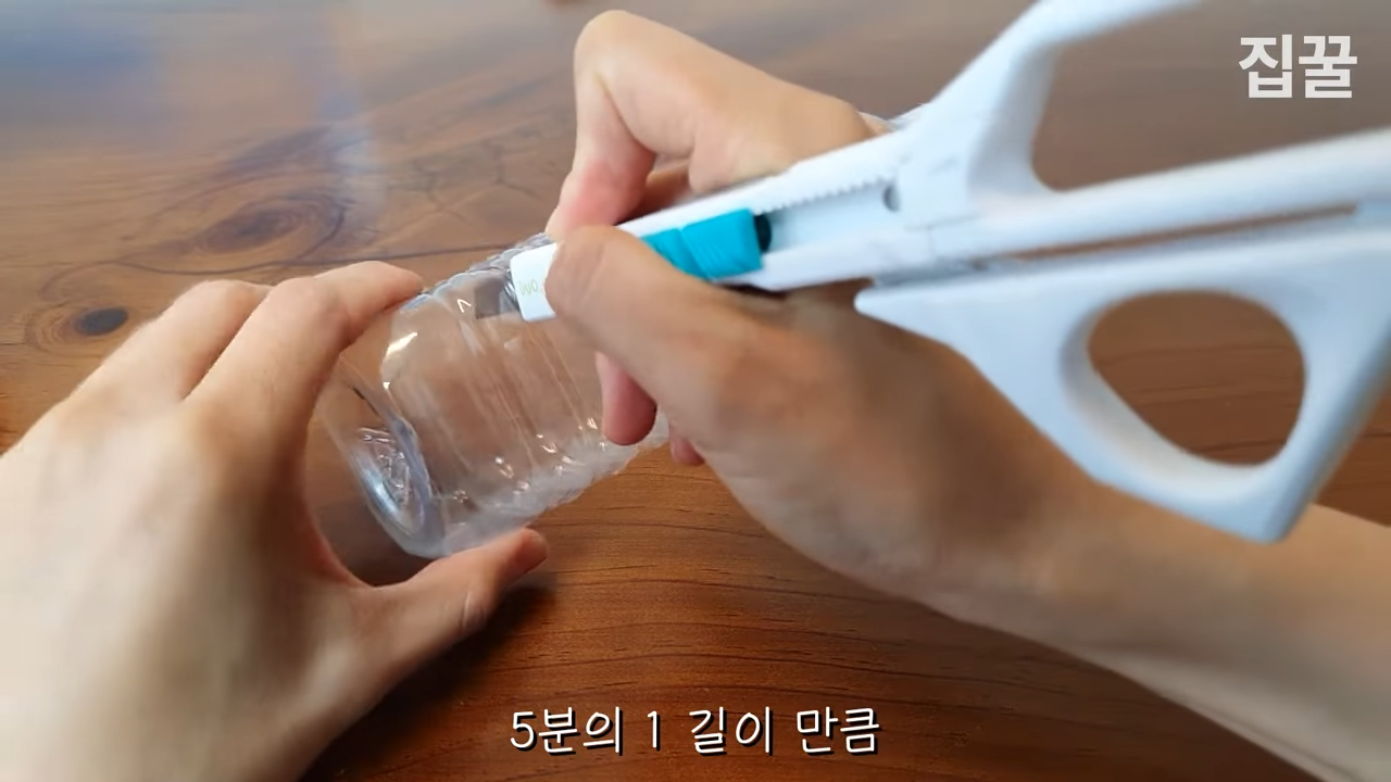 가장 효과적인 변기청소방법은 과산화수소수를 이용하는 것입니다. 과산화수소수를 변기에 뿌리기전에 500ml페트병으로 변기 청소도구를 만들어 주면 좋습니다.500ml 페트병을 위 그림과 같이 잘라준비합니다.